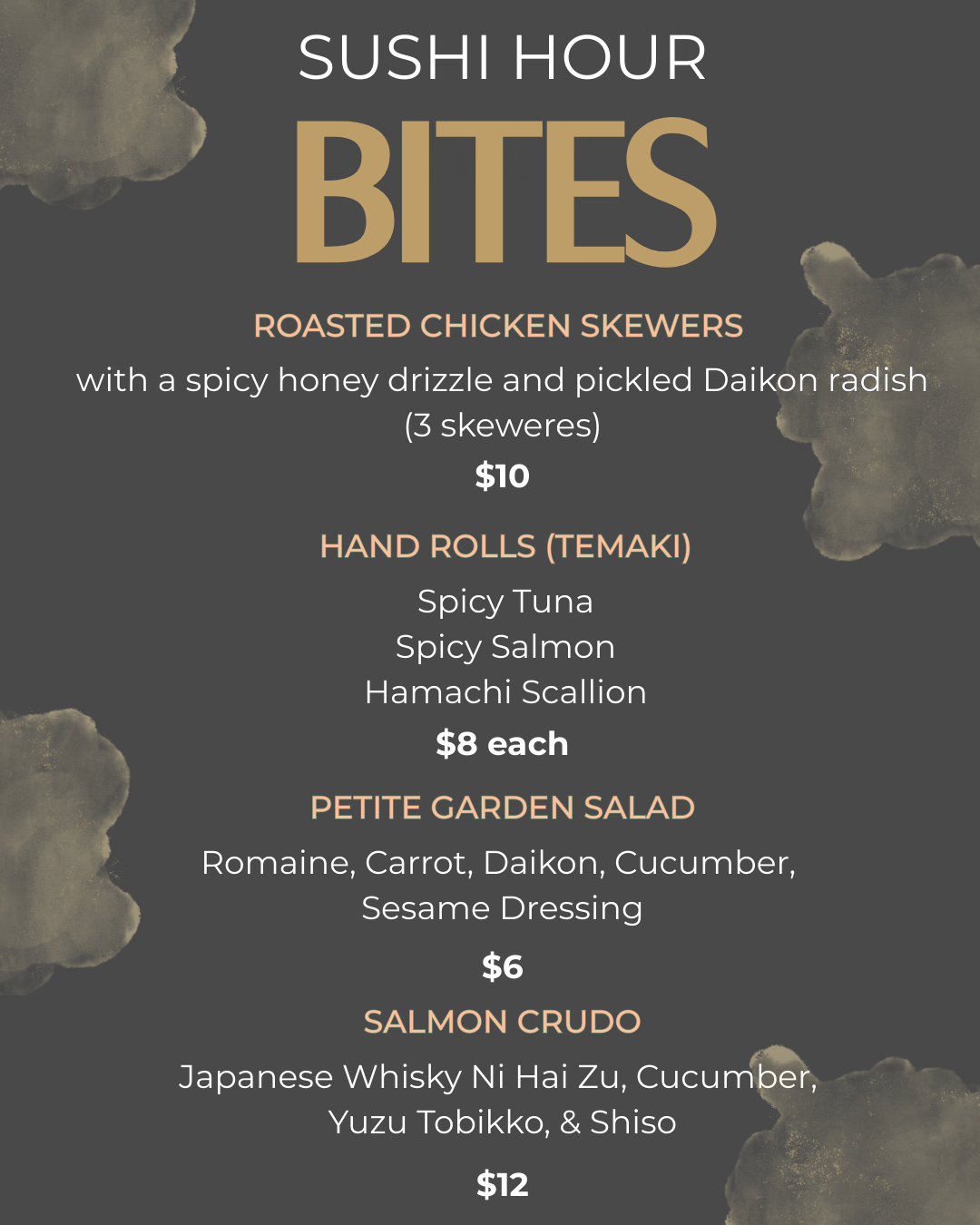 Experience our version of happy hour — crafted with intention, flavor, and a touch of Tomiko-San elegance.